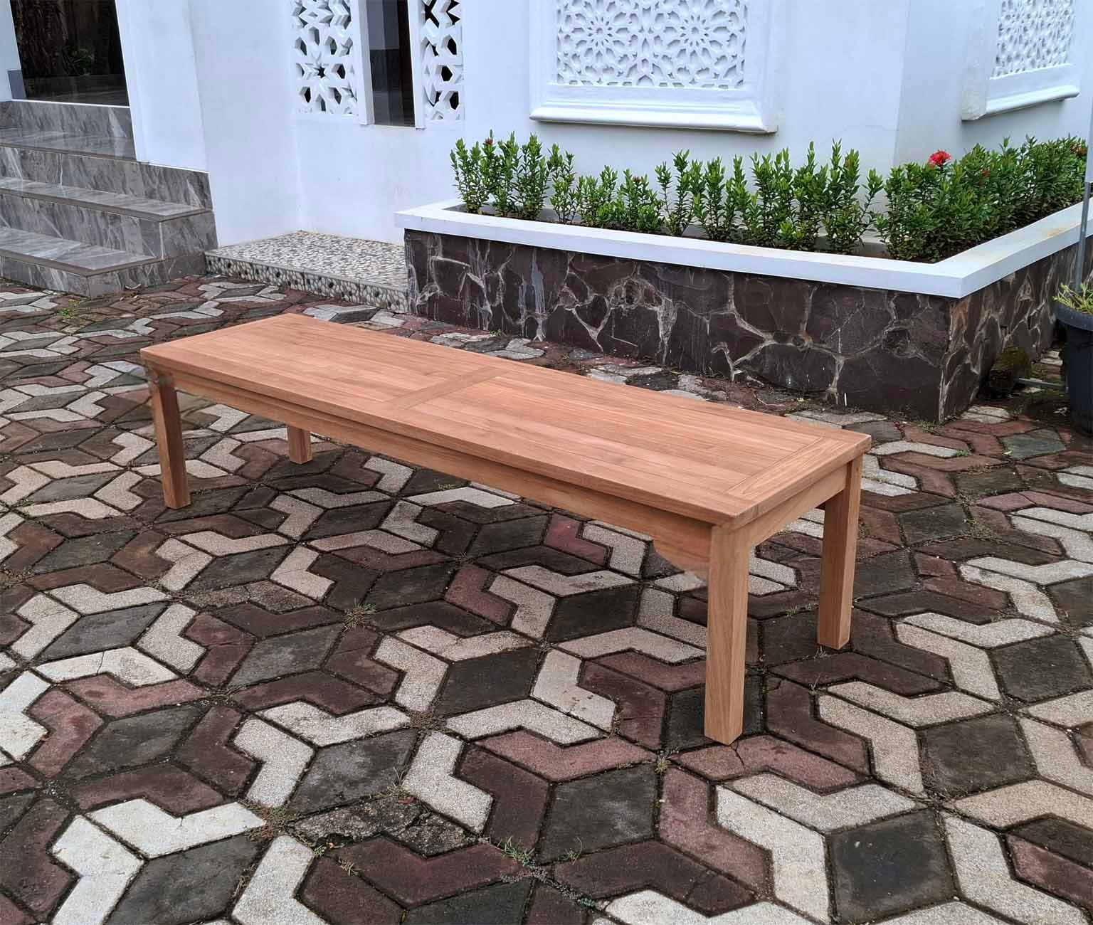 Banco sin respaldad de 180cm de largo de madera de teca maciza para el exterior