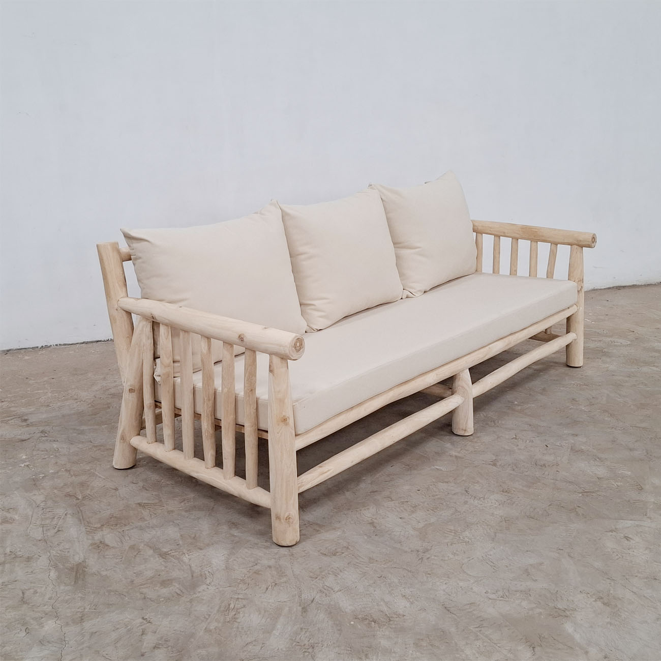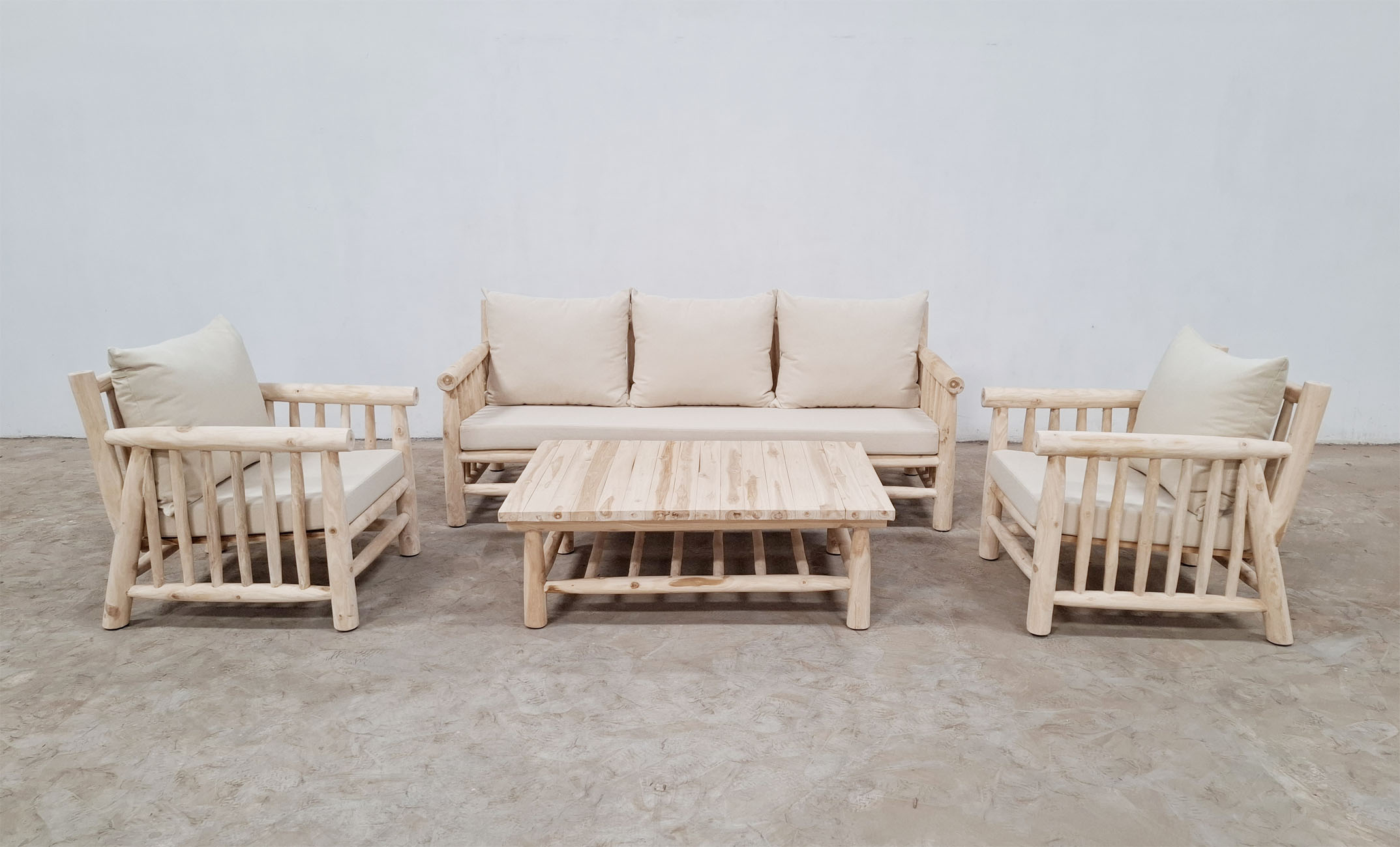 Conjunto Sofá de 4 piezas modelo “Ibiza” para el exterior hecho de palos de madera de teca maciza natural