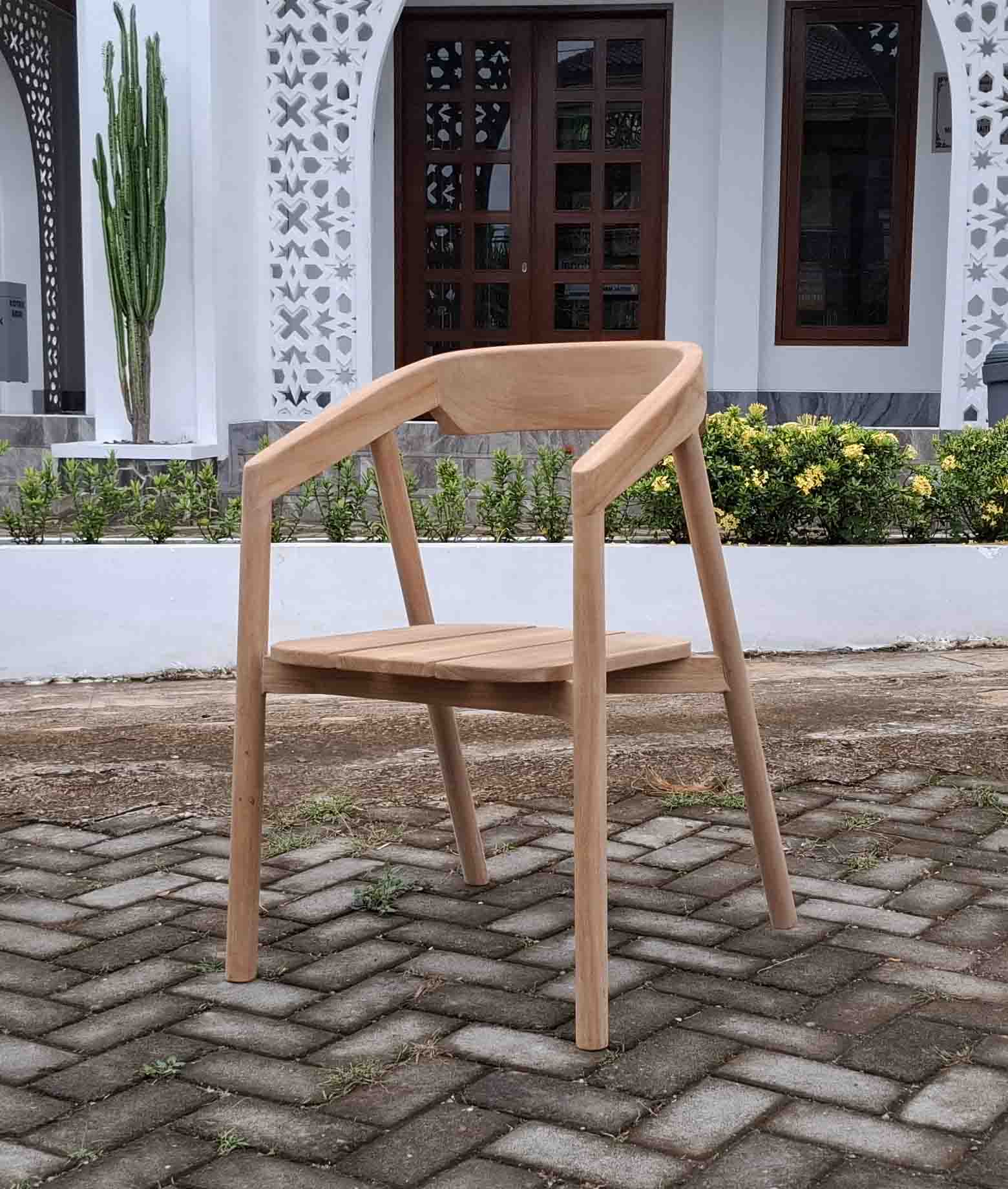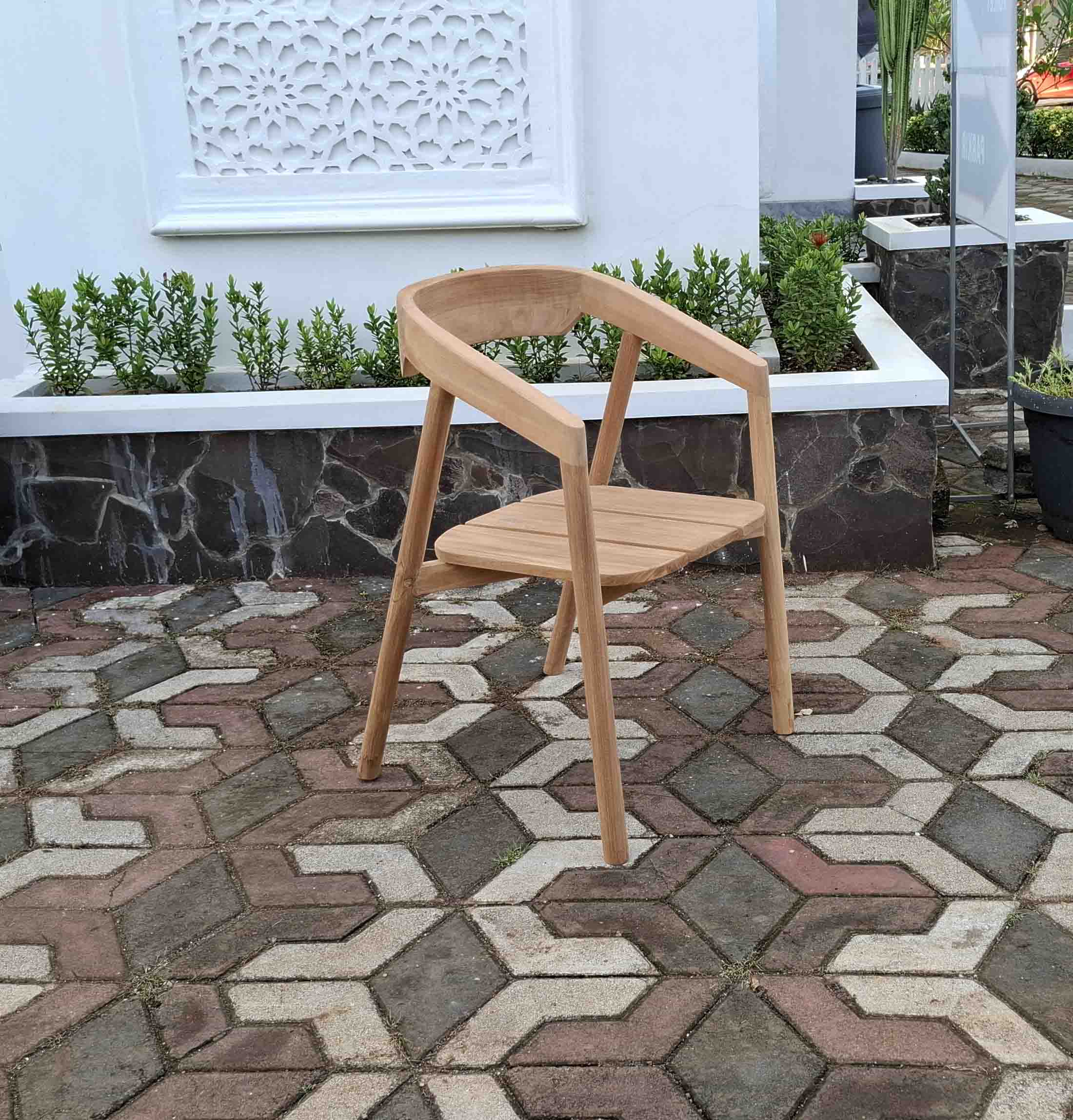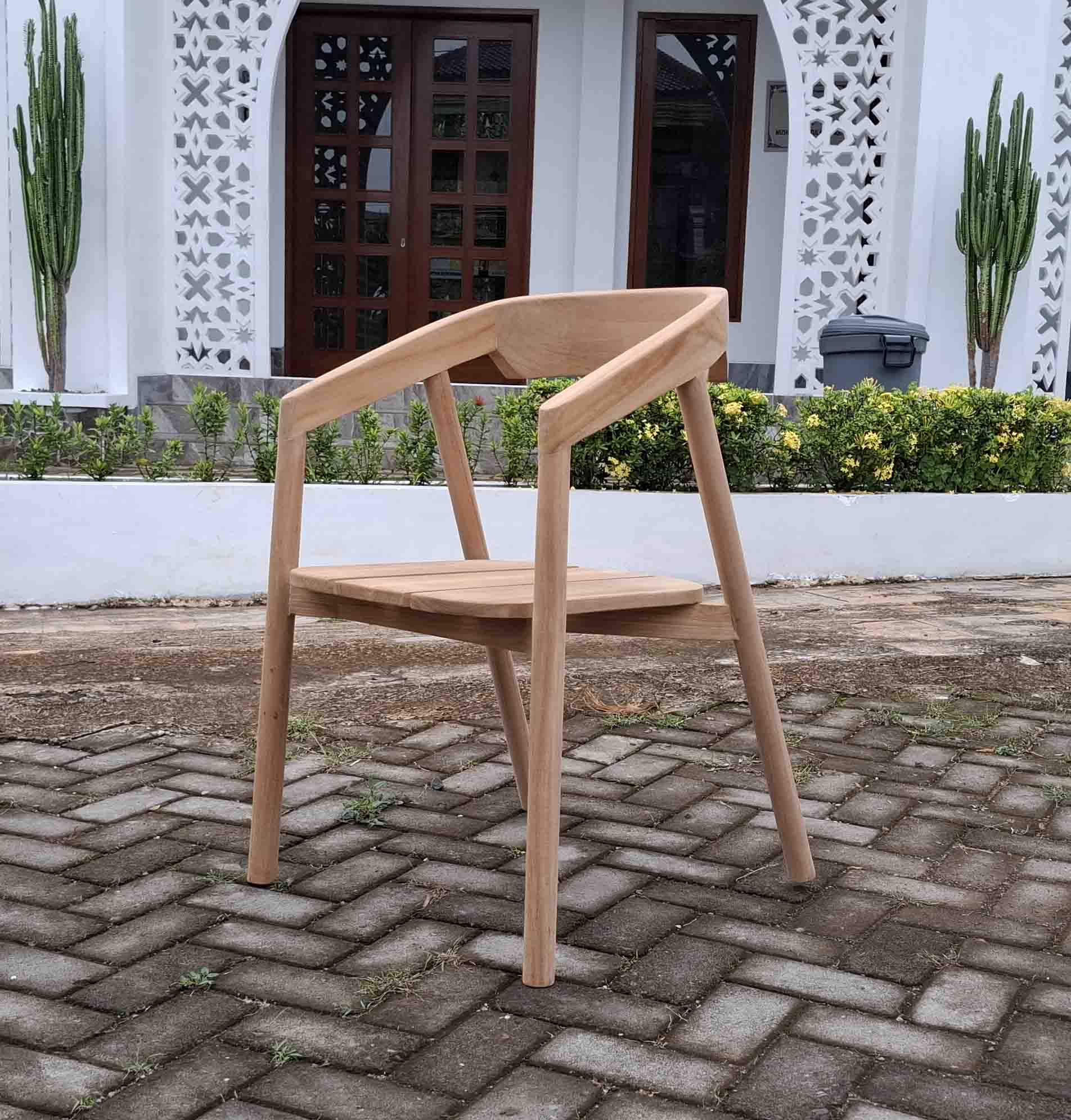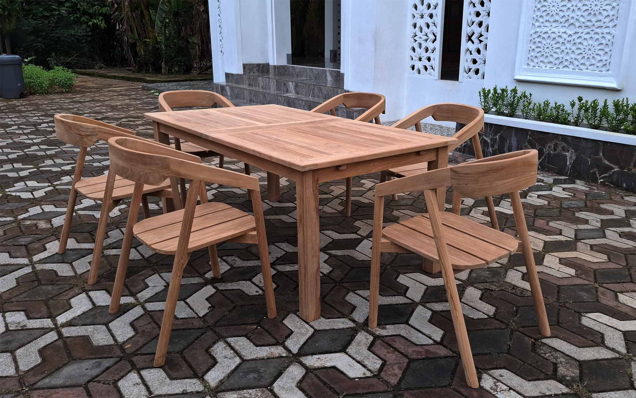 Pack 6 sillas con brazos de madera de teca maciza modelo “Milan”, vienen montados y pegados de fabrica que le hace mucho mas resistente.